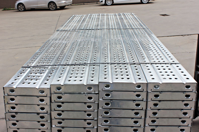在施工場地,我們經常看到一些金屬跳板,也就是鋼跳板,俗稱腳手架板。 施工人員在上面行走及搬運材料用的輔助器材。這些鋼跳板上有很多孔。 這些孔它的作用是很廣泛的 A. 可以排水,雨天施工不積水。 B. 冬天施工防滑,安全得到保障。 C. 防結砂,有效防止堆積砂子。鋼跳板在船廠噴砂房很受歡迎。 D. 鋼跳板之間的鏈接。鋼筋或鐵絲固定,方便牢固。 在使用鋼跳板施工時,搭建腳手架的鋼管可適當減少